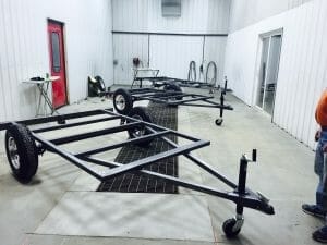 These trailers come with Rockwell American Axles. Barrett started these trailers with our Custom Utility Trailer Parts Kits. We modified these kits to suite his needs.