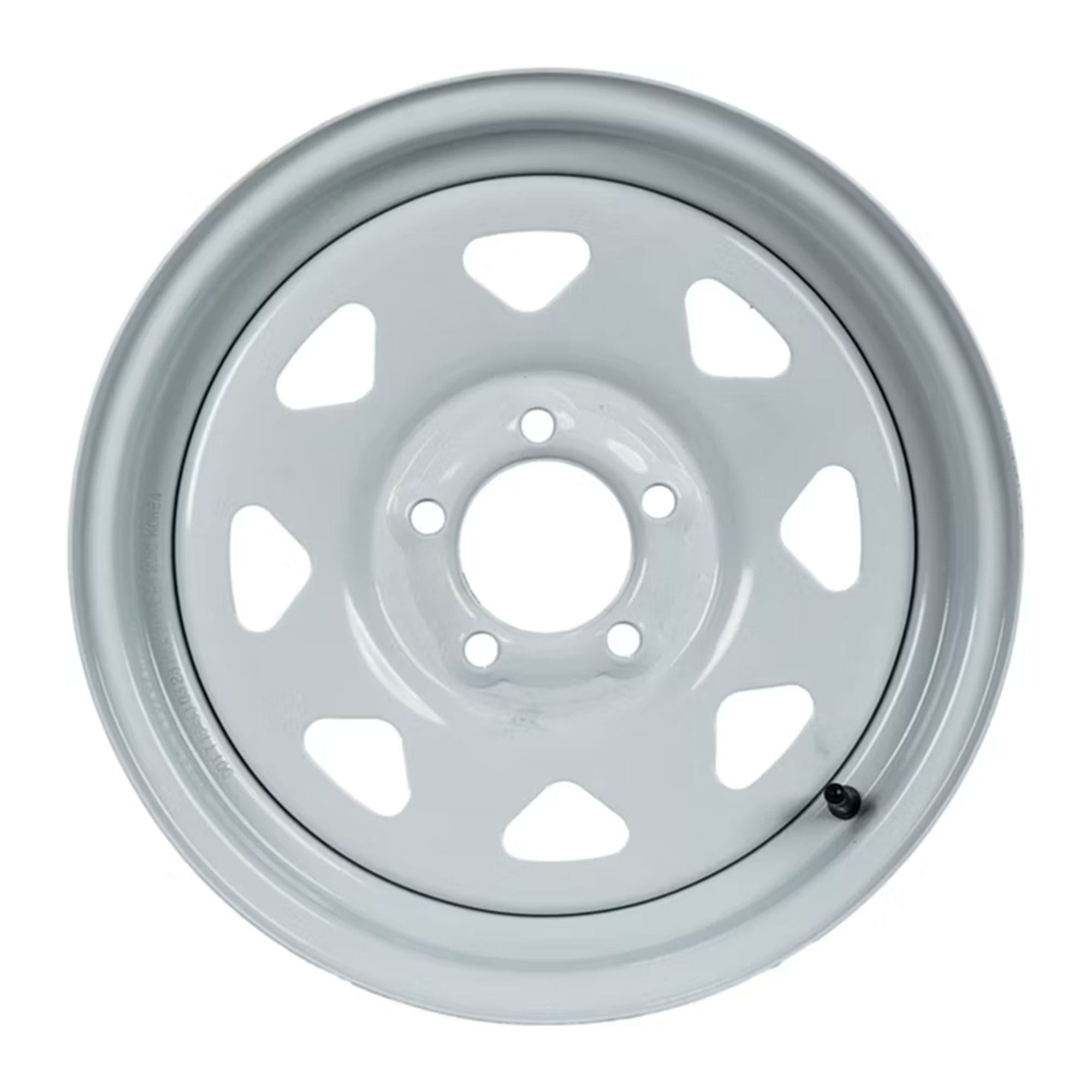 The 15″ x 5″ White Spoke Steel Trailer Wheel offers dependable strength and classic styling for a variety of trailer types. Featuring a 5 on 4.5″ bolt pattern, this wheel is designed to fit most 3,500 lb trailer axles, providing a secure and balanced connection for smooth, stable towing.