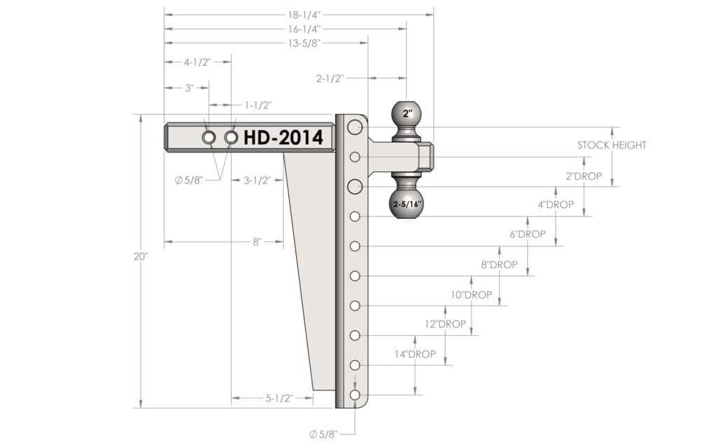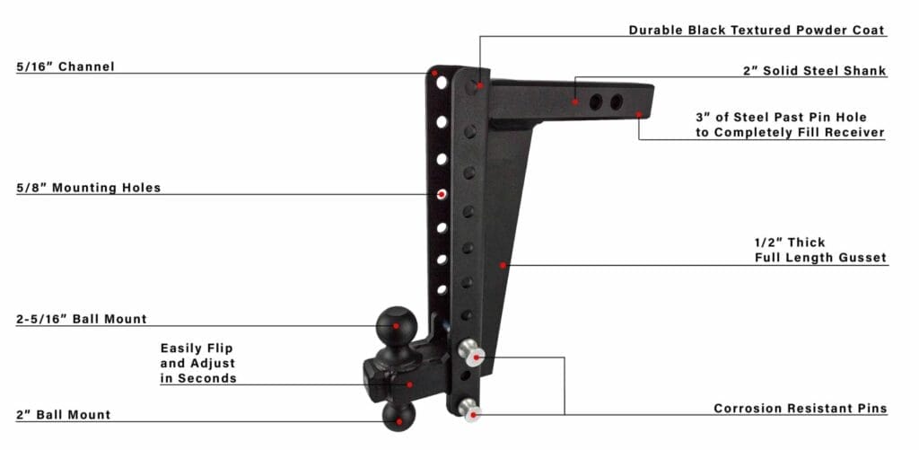 - 8 Ride Heights That Are Easily Adjustable–Hitch has an overall length of 20”.