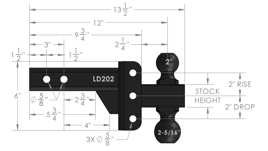 - 2″ & 2-5/16″ Dual Ball Mount