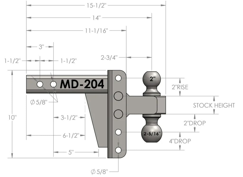 - 4 Ride Heights That Are Easily Adjustable – Hitch has an overall length of 10”.