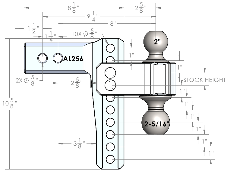 This hitch is the perfect choice for trucks with a receiver height of 20”-21” (ground to the bottom of the receiver tube). It has an overall length of 10-5/8”.