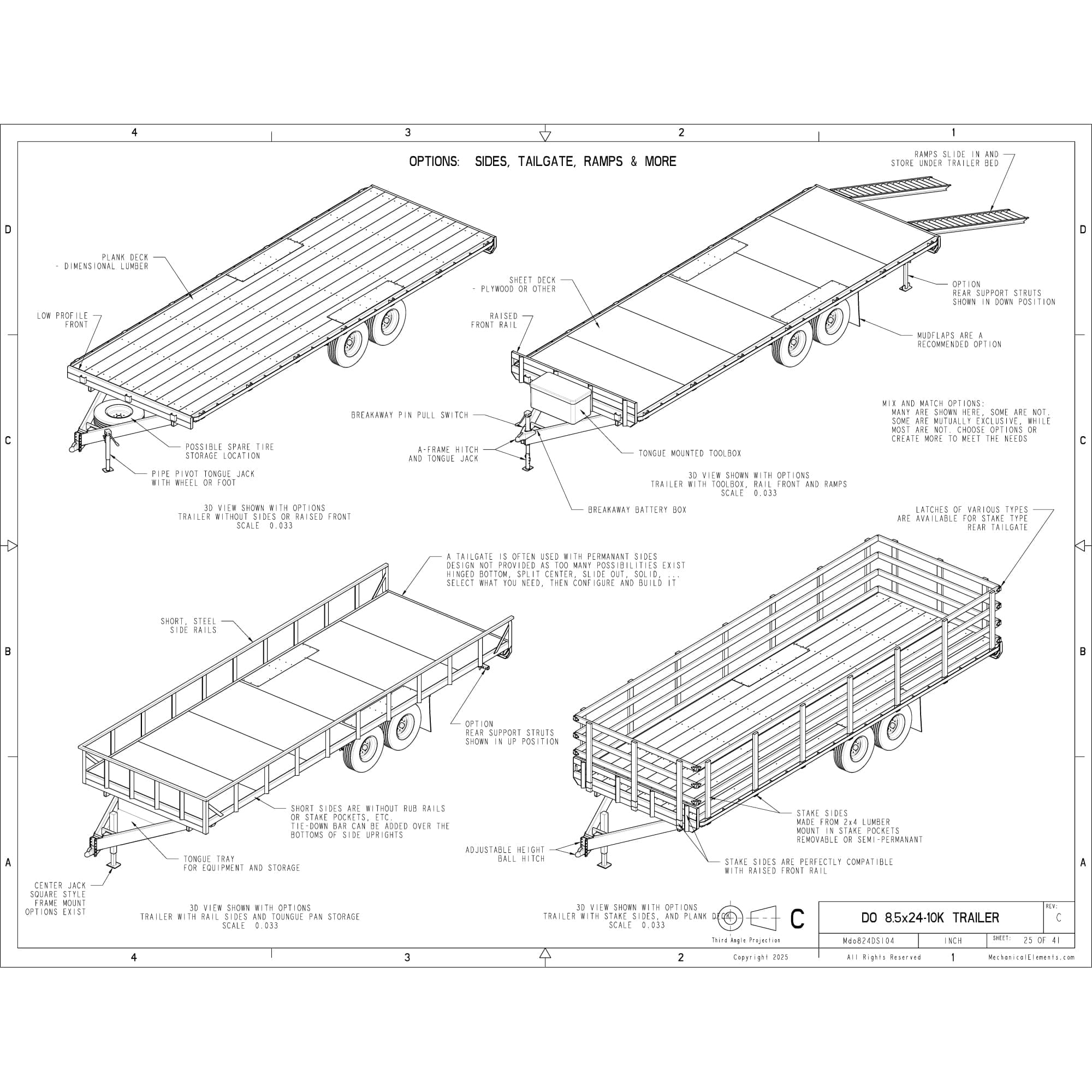 Build your perfect heavy-duty trailer with our 8.5′ x 24′ Deck Over Trailer Plans – 10,400 lbs Capacity, engineered by Synthesis Engineering. Designed for durability, this trailer features a robust 10,400 lbs capacity, perfect for various hauling needs. The plans include detailed instructions and multiple configuration options, ensuring a customizable build to meet your specific requirements.