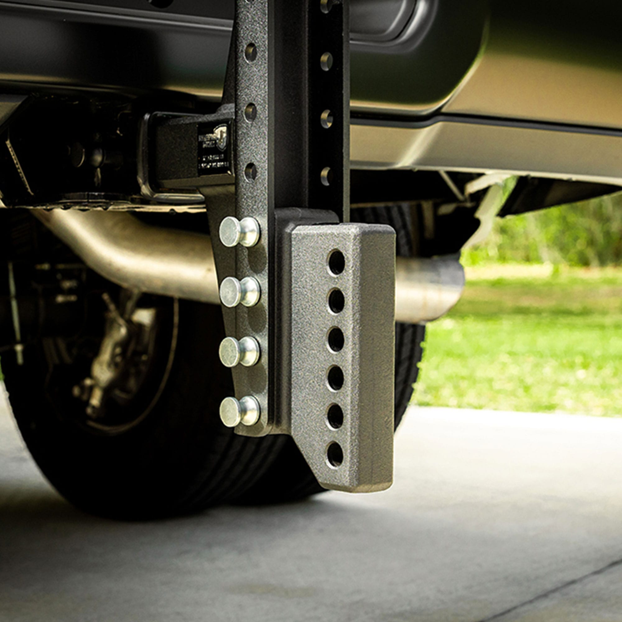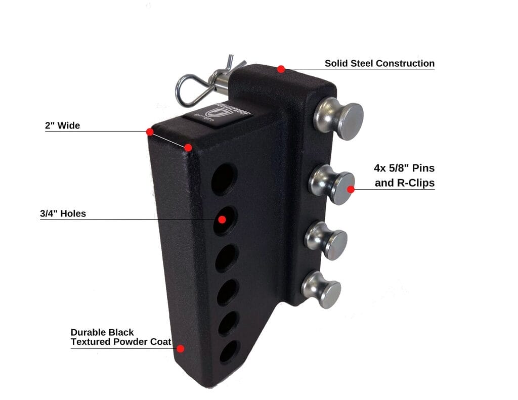 This solid steel adapter allows you to attach a weight distribution system to a BulletProof Hitch. After modifying your vehicle’s suspension and/or adding larger tires, you may need a hitch with a longer drop. This accessory is compatible with all BulletProof Hitches and MOST weight distribution systems. The adapter is 2″ wide and the holes are 3/4″ in diameter and spaced 1-1/4″ on center.