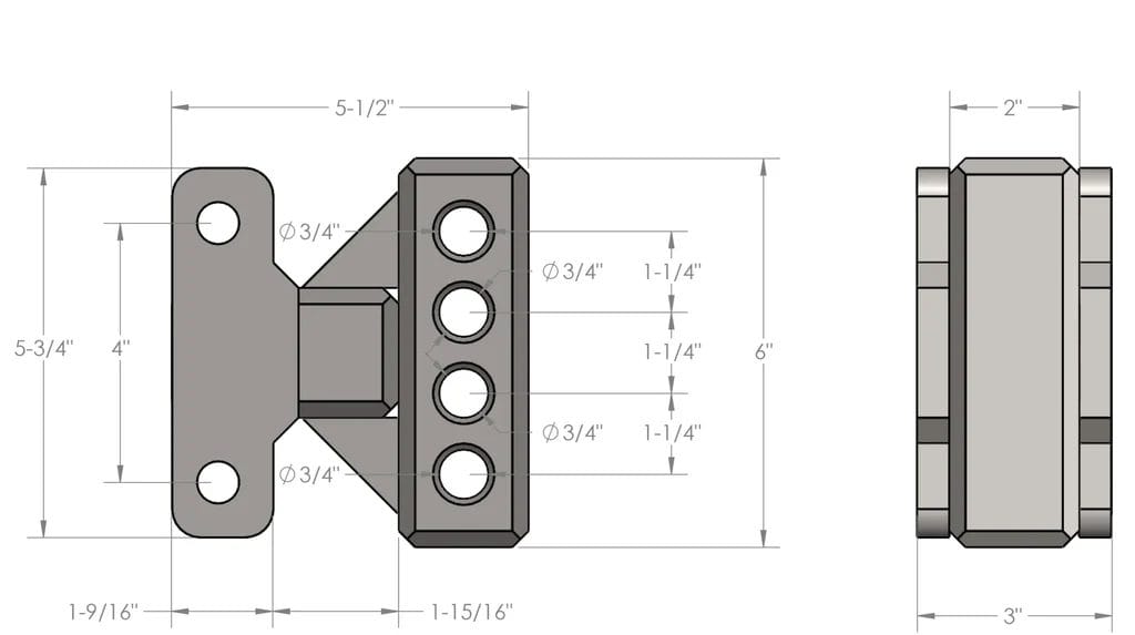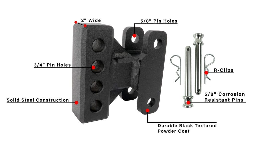 The Medium Duty Weight Distribution Adapter allows you to attach a weight distribution system to a BulletProof Hitch. After modifying your vehicle’s suspension and/or adding larger tires, you may need a hitch with a longer drop. This accessory is compatible with all BulletProof Hitches and MOST weight distribution systems. The adapter is 2” wide and the holes on the weight distribution adapter are 3/4″ diameter and spaced 1-1/4″ on center.